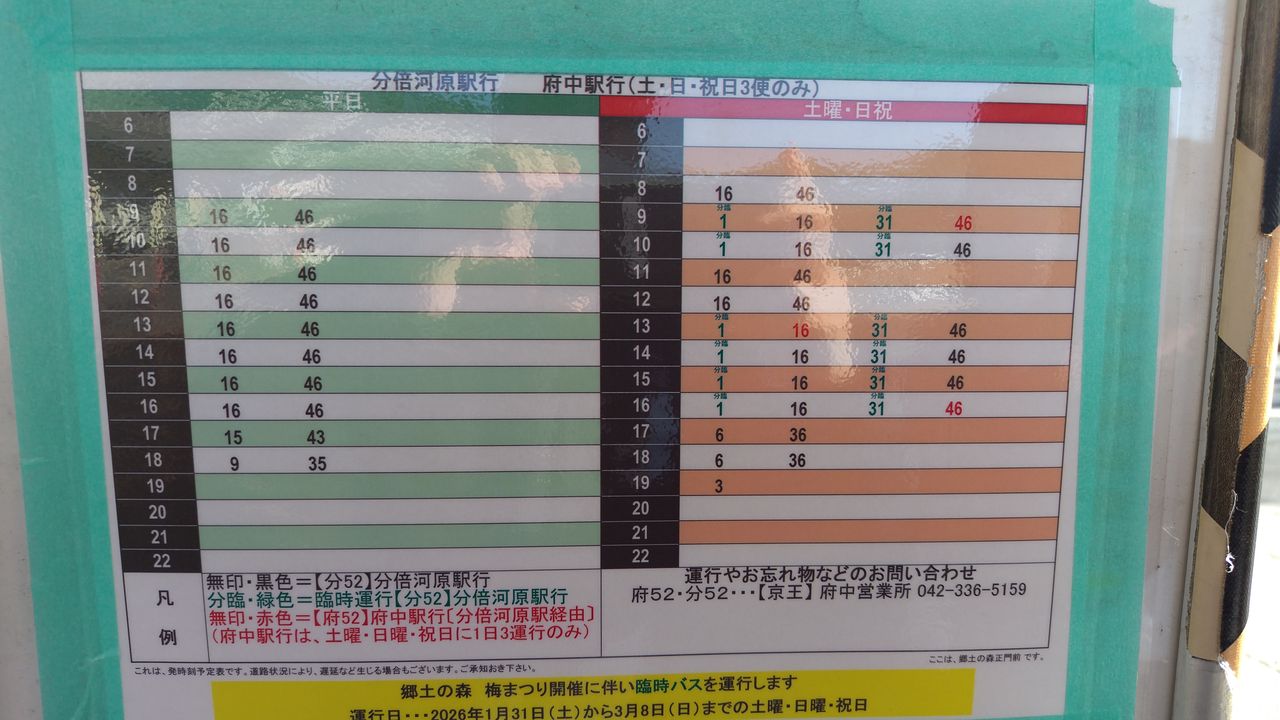 | 郷土の森からの帰りのバス時刻表 2026/01/31 09:54:53.294 |